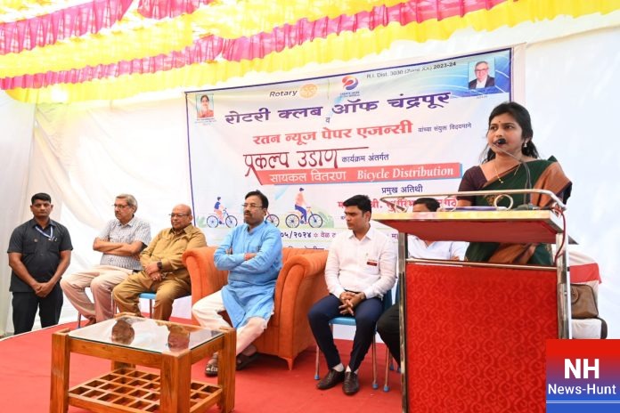 रोटरी क्लब ऑफ चंद्रपूर आणि रतन न्यूजपेपर एजन्सीच्या संयुक्त विद्यमाने उड्डाण प्रकल्पांतर्गत पहिल्या टप्प्यात वृतपत्र वितरकांना ६५ सायकलचे वितरण करण्यात आले. यावेळी रोटरी क्लब ऑफ चंद्रपूरचे अध्यक्ष अनुप यादव, डॉ. विजय आईंचवार, रतन न्यूजपेपर एजन्सीचे जितेंद्र चोरडिया, एमआयडीसीचे अध्यक्ष मधुसुदन रुंगठा, रोटरी क्लबचे सचिव कुंजबिहारी परमार, डॉ. गोपाल मुंधडा, डॉ. अशोक वासलवार, अरुण तिखे, रविंद्र जुनारकर, नवीन चोरडिया, सार्वजनिक संस्थांचे पदाधिकारी आदींची प्रमुख उपस्थिती होती.