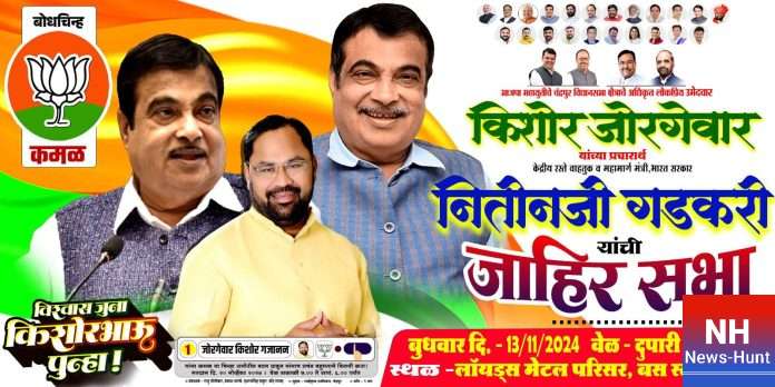 चंद्रपूर:महायुतीचे अधिकृत उमेदवार आमदार किशोर जोरगेवार यांच्या प्रचारार्थ केंद्रीय परिवहन मंत्री व भाजप नेते नितीन गडकरी हे उद्या, बुधवारी चंद्रपूरात असणार असून, दुपारी दीड वाजता घुग्घुस येथील बसस्थानकाजवळील लॉयड मेटल परिसरात त्यांच्या जाहीर सभेचे आयोजन करण्यात आले आहे.