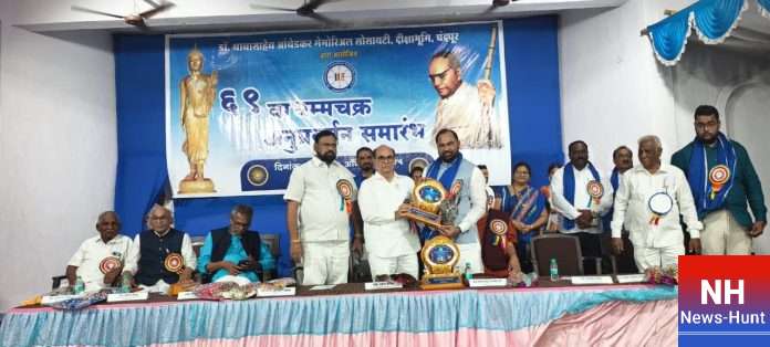 डॉ. बाबासाहेब आंबेडकर मेमोरिअल सोसायटी, दीक्षाभूमी, चंद्रपूर यांच्या वतीने ६९ वा धम्मचक्र अनुप्रवर्तन समारंभ दीक्षाभूमी येथे उत्साह आणि शिस्तबद्ध वातावरणात संपन्न झाला. या कार्यक्रमात आमदार किशोर जोरगेवार बोलत होते.