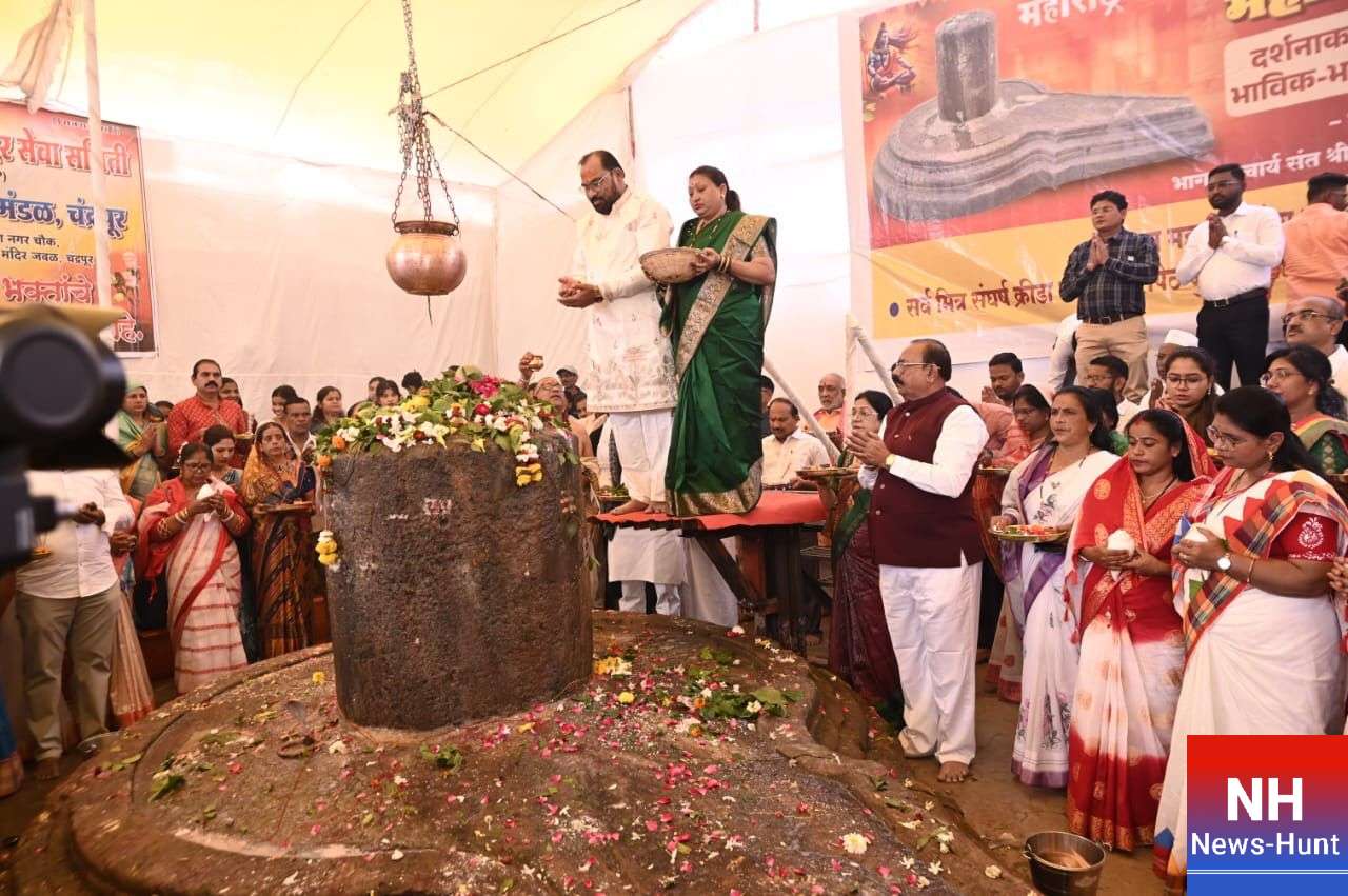 चंद्रपूर : महाशिवरात्री महोत्सवानिमित्त लालपेठ, भिवापूर वार्ड, येथील सुमारे ३०० वर्षे पुरातन व महाराष्ट्रातील सर्वात विशाल महाशिवलिंग स्थळी आज सकाळी १०८ दांपत्यांच्या हस्ते महाआरती करण्यात आली. यावेळी आमदार किशोरभाऊ जोरगेवार सहपत्नीक उपस्थित होते. वेदमंत्रांच्या गजरात आणि ‘हर हर महादेव’च्या घोषणांनी परिसर दुमदुमून गेला होता.