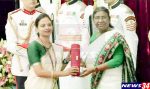 चंद्रपूरच्या पुष्पा पोडे यांना राष्ट्रपती मुर्मु यांच्या हस्ते सत्कार करण्यात आला.